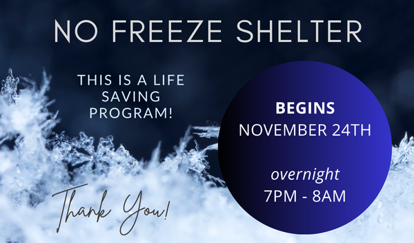 Urgent NoticeWe are in immediate need of No Freeze Shelter Overflow Program Volunteers. For more information, please visit our No Freeze Support Page! |